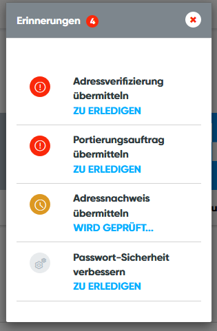 Mit dem Glocken-Symbol weist Ihr Konto Sie darauf hin, dass noch Aufgaben offen sind. Die rote Numer zeigt an, wie viele Aufgaben noch nicht abgeschlossen sind.