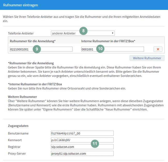 Sollen also zwei Telefonnummern von NetCologne in der Fritzbox angelegt werden, gehen Sie folgendermaßen vor: