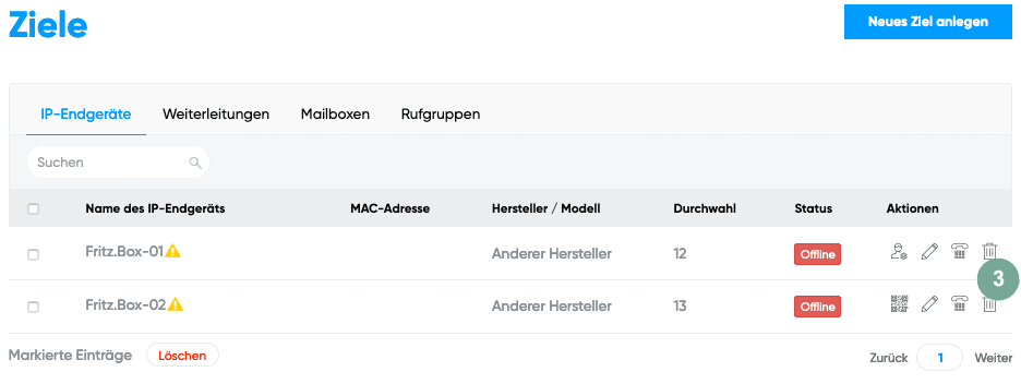Sie starten mit dem Anlegen der FritzBox als Ziel in Ihrem NetCologne Cloud PBX Konto. Dann legen Sie eine Weiterleitung zur FritzBox ein. Auf diese Weise verbinden Sie die Rufnummer mit der Fritzbox. Wichtig dabei ist, dass Sie für jede Ihrer später über die Fritzbox genutzten Rufnummern ein Ziel anlegen und benennen.