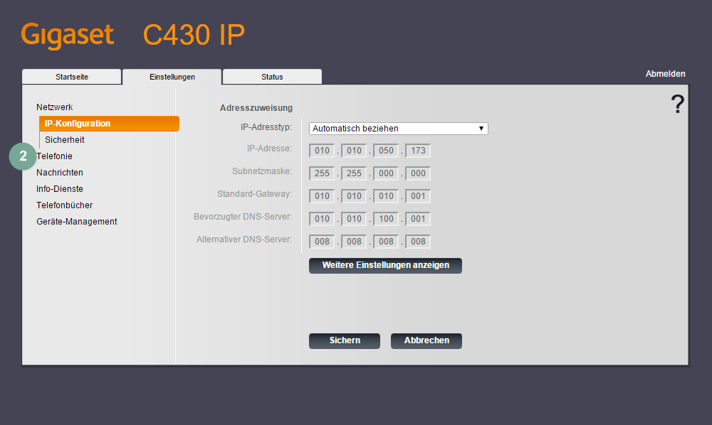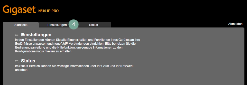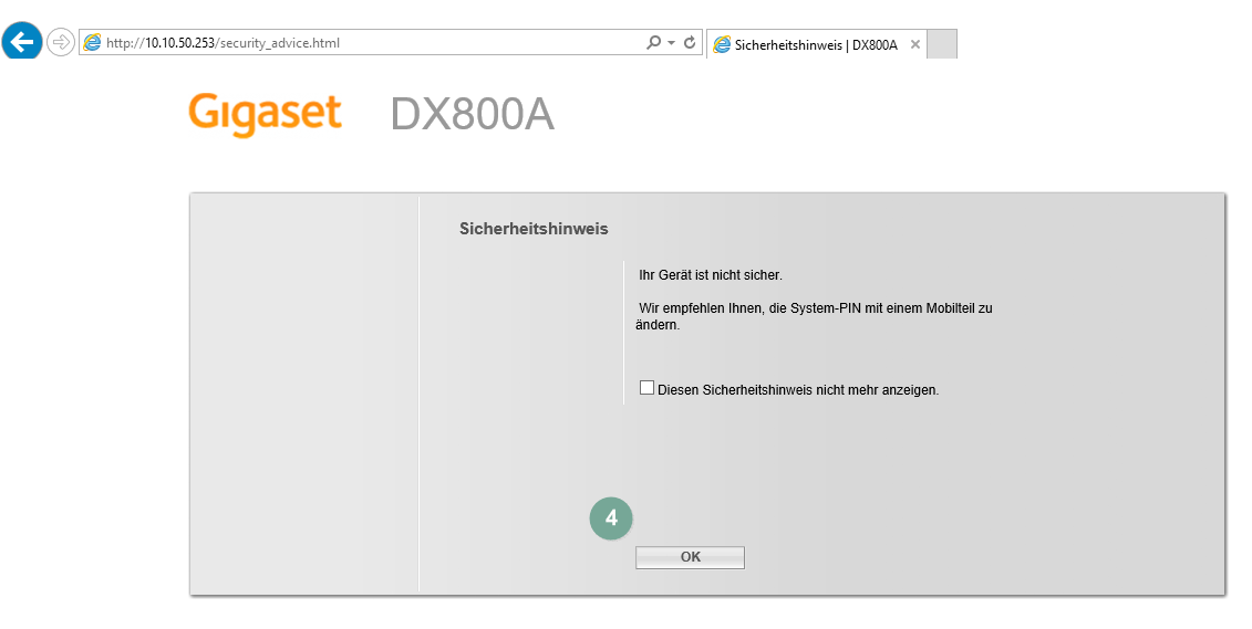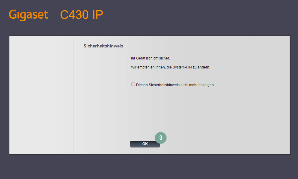 - Die Bestätigung "OK" bringt Sie zur Web-Oberfläche Ihres Gigaset.