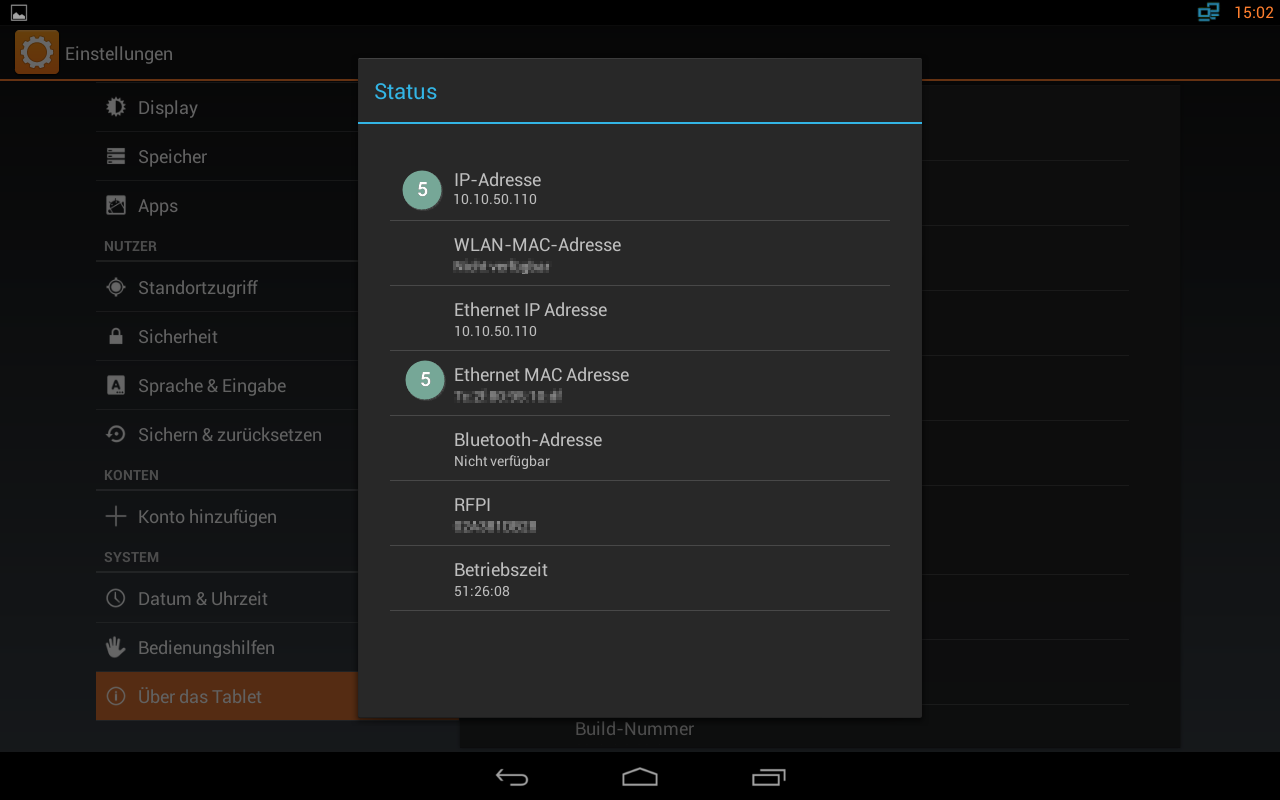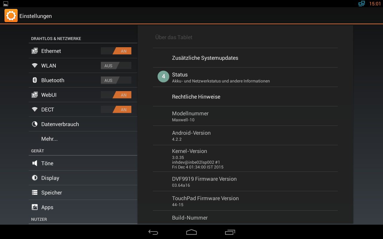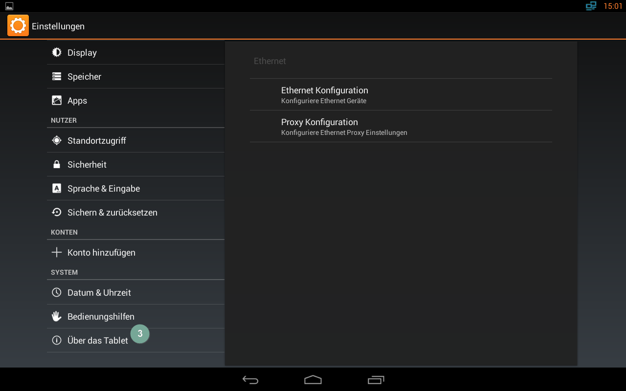 - Im linken Navigationsmenü tippen Sie auf "Über das Tablet".