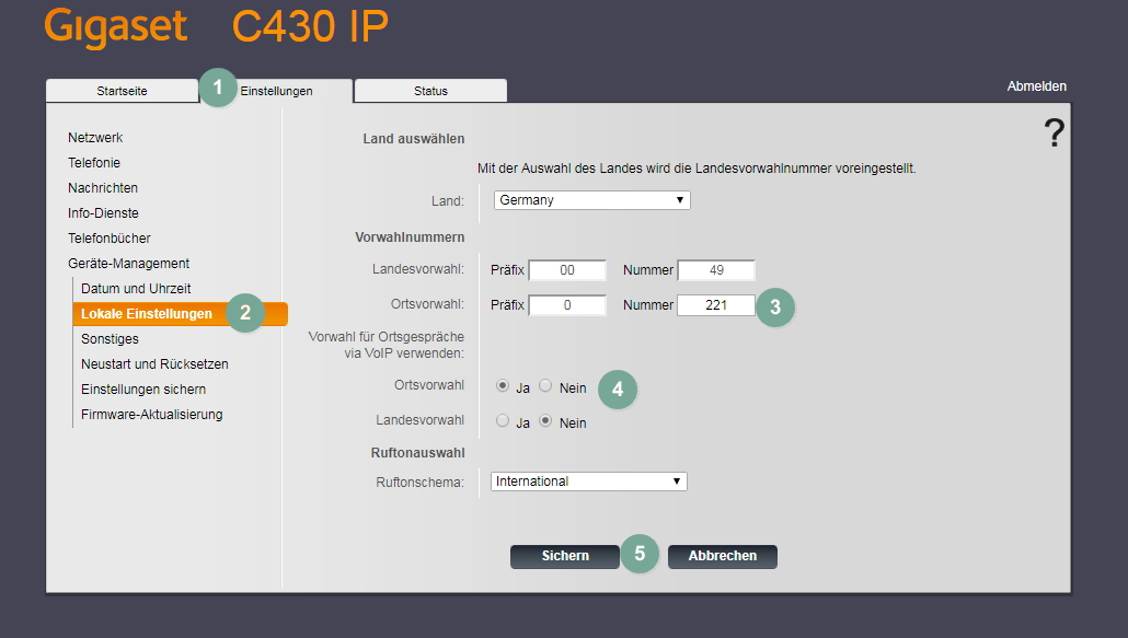 - Aktivieren Sie "Ja" bei „Ortsvorwahl“.