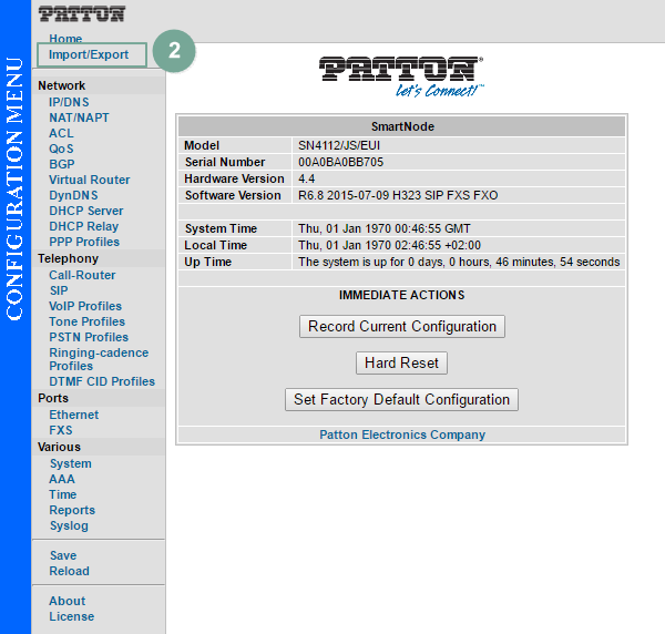 Öffnen Sie nun Ihren Internet-Browser und geben Sie die IP-Adresse des Patton-Fax-Adapters ein. Es öffnet sich die Administrator-Oberfläche des Adapters.