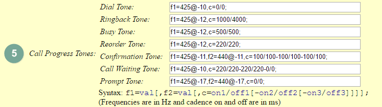 Confirmation Tone: f1=425@-11, f2=440@-11, c=100/100-100/100-100/100;