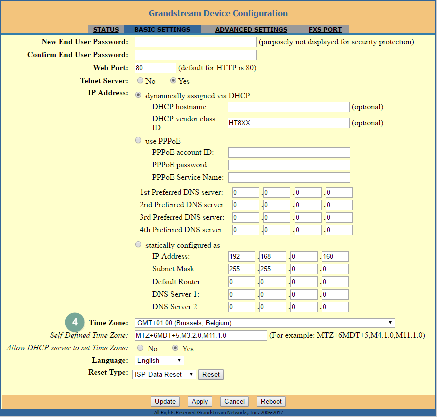 - Öffnen Sie die Registerkarte „Basic Settings“ und stellen Sie die Zeitzone ein, wie im Bild gezeigt.