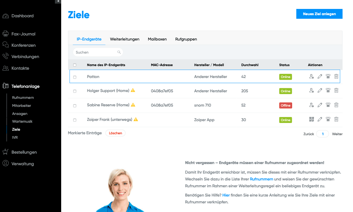 - Starten Sie, indem Sie in der NetCologne Cloud PBX ein neues Ziel einrichten.