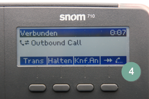 snom-Telefone erlauben Konferenzen mit bis zu 4 Teilnehmern. In Beispiel A zeigen wir Ihnen, wie Sie einen weiteren Teilnehmer anrufen, um ihn in die Konferenz nehmen. In Beispiel B zeigen wir Ihnen, wie Sie einen zusätzlichen Anrufer in die Konferenz nehmen.