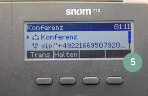 An den Beispielen der Geräte Mitel (Aastra) 6869i, Gigaset DE410 IP PRO und snom 710 zeigen wir Ihnen nun, wie Sie Konferenzen auch von Ihrem Telefon aus starten. Haben Sie typenähnliche Geräte, kann es sein, dass es bei Ihnen zu Abweichungen beim Vorgehen kommen kann.