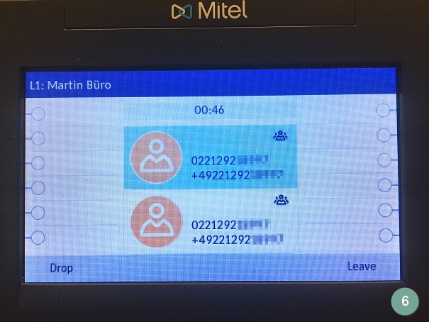 Lesen Sie nun, wie Sie Telefonkonferenzen mit zwei Teilnehmern über Ihr Mitel (Aastra) 6869i starten.