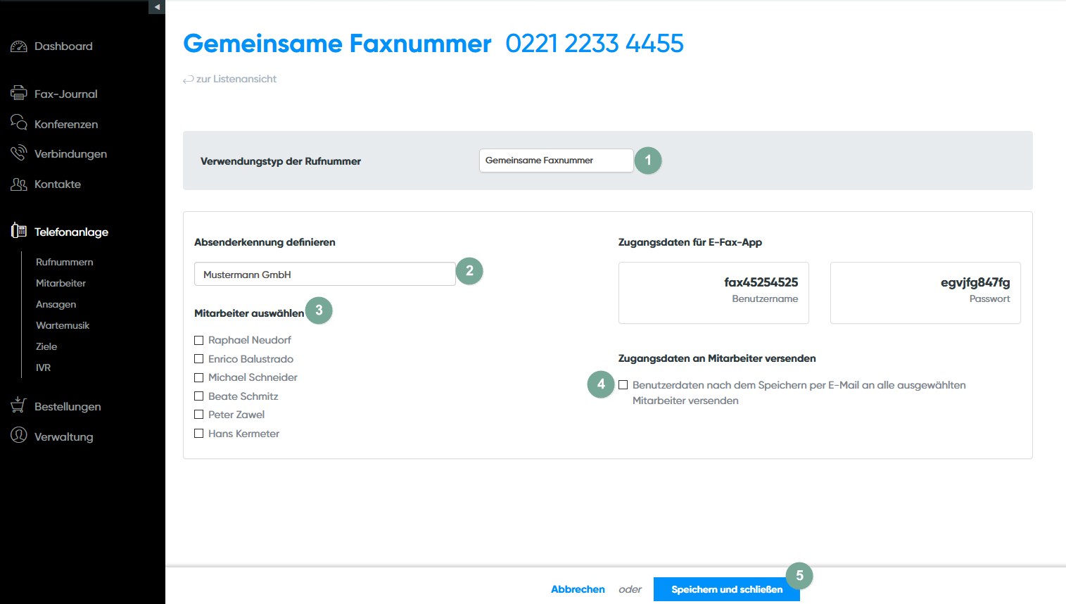 Es gibt gemeinsame Faxnummern oder persönliche Faxnummern. Die persönliche Faxnummer steht nur einem Mitarbeiter zur Verfügung.